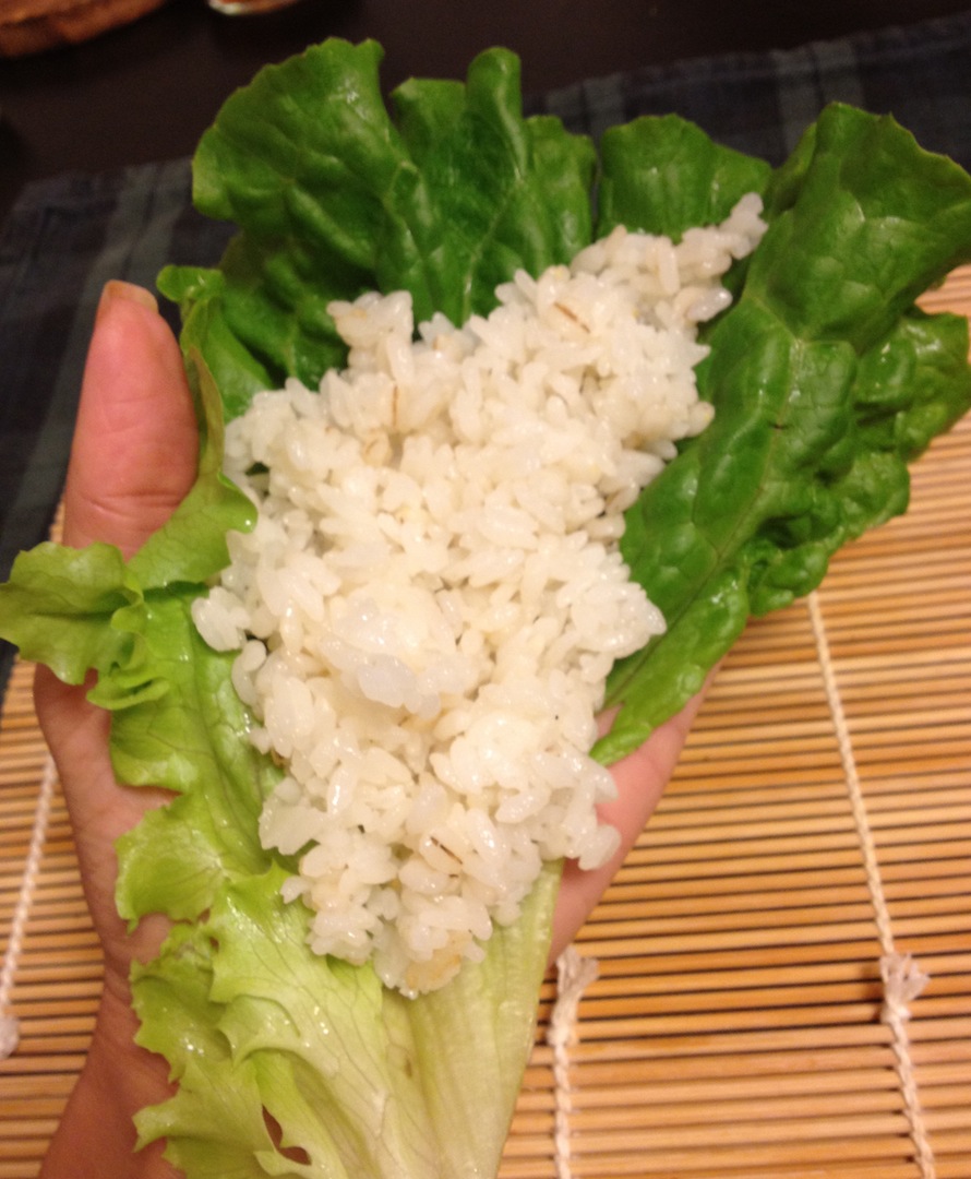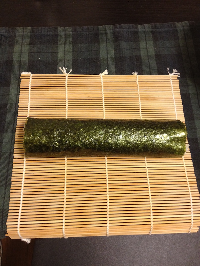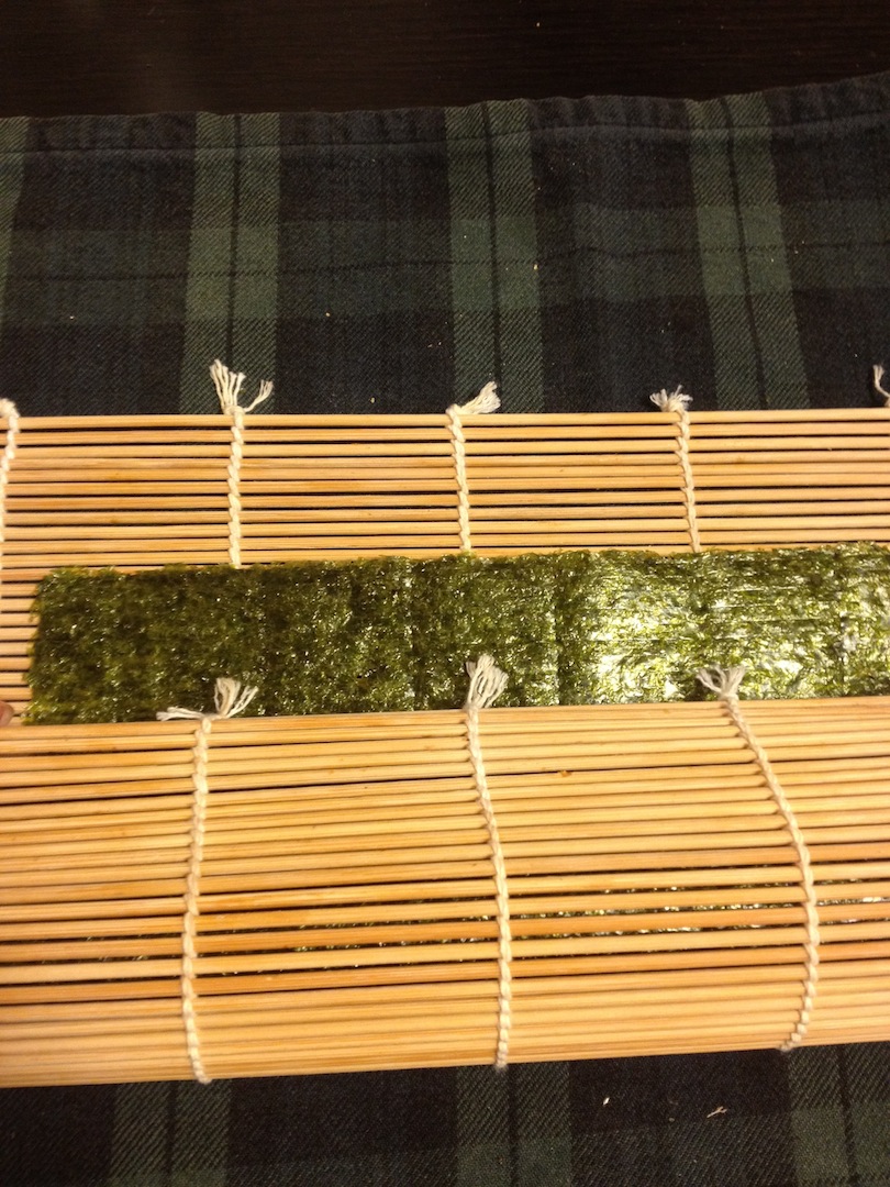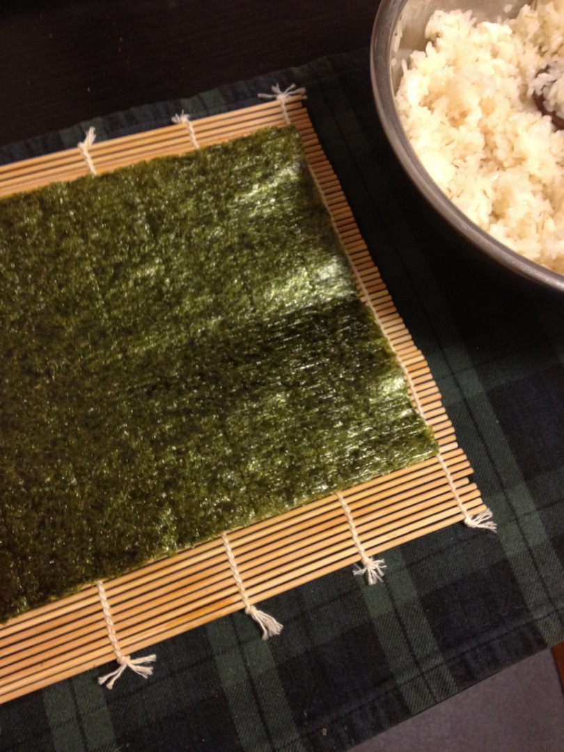 ☆put a sheet of seaweed on a rolling mat (bamboo).